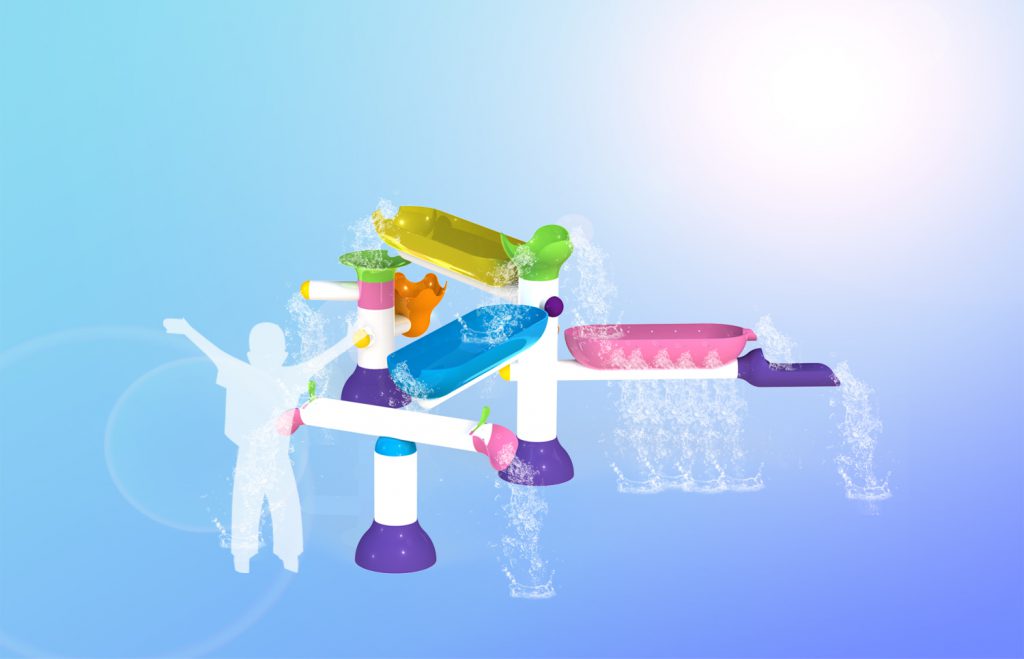 Simple, interactive playground equipment is created by a series of different nozzles that cause different water effects and sensations on the body. Interactivity is through the action and reaction with the water jets.