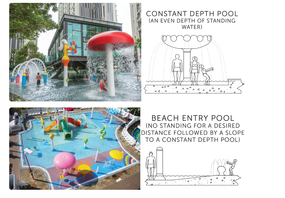 Our splash pad solutions create a secure water play experience with colorful, interactive water park structures of various types and elevations. Splash pads are smaller water playgrounds with no standing water, often referred to as zero depth facilities. Different water features attending to different children’s age groups provide an architectural presentation of water in a safe water play environment.